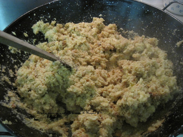 Llevamos 30 minutos removiendo, empieza a desmigarse la masa.