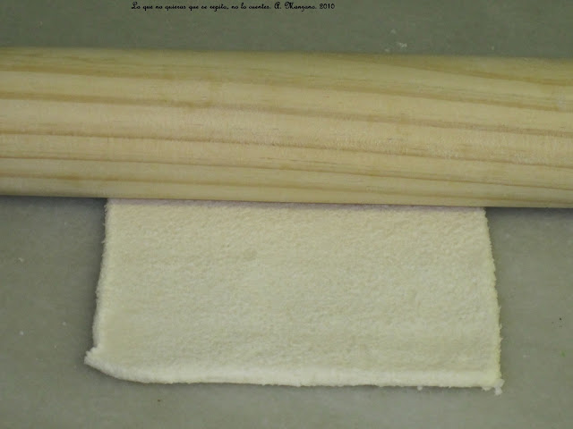 En primer lugar planchamos cuatro rebanadas con un rulo de cocina.